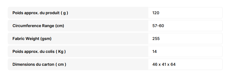 - Tour de tête : 58 cm